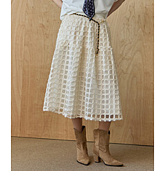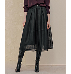 스퀘어 메쉬 볼륨 밴딩 플레어 롱 스커트