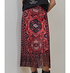 에스닉 페르시안 패턴 프린지 플리츠 롱 스커트
