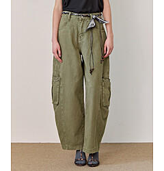 스카프 벨트 커브드 절개 와이드 카고 팬츠