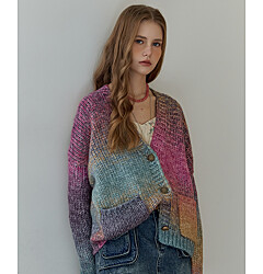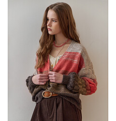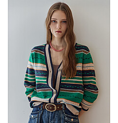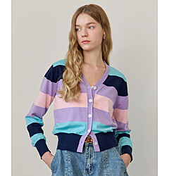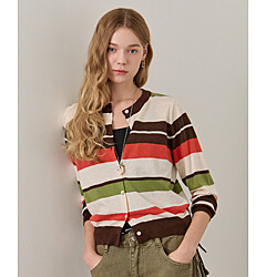 멀티 컬러 스트라이프 라운드넥 니트 가디건
