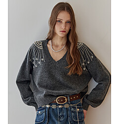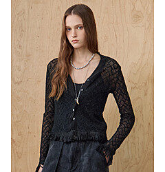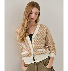 다이아 패턴 진주버튼 브이넥 니트 가디건