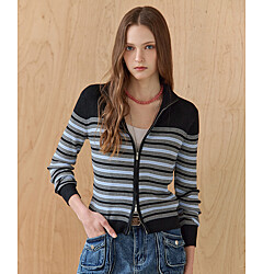 투톤 스트라이프 투웨이 집업 니트 가디건