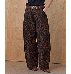 빈티지 레오파드 커브드 와이드 코튼 팬츠