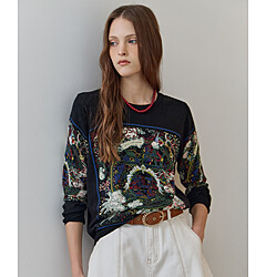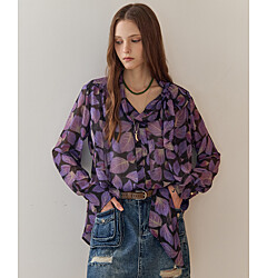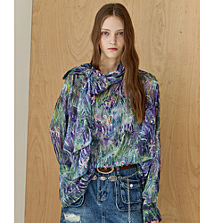 아트 플로럴 시스루 쉬폰 타이 블라우스