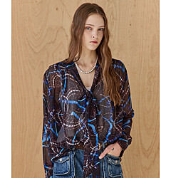 네온 패턴 시스루 타이 쉬폰 블라우스