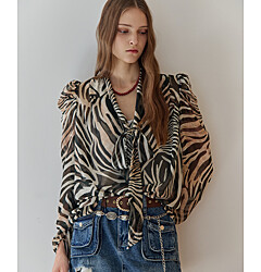 지브라 시스루 타이 브이넥 쉬폰 블라우스