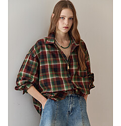 일러스트 자수 체크 셔츠 레이어드 맨투맨