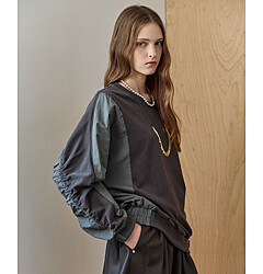 코튼 블록 셔링 벌룬 슬리브 맨투맨