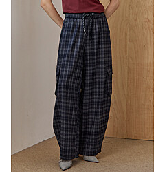 체크 패턴 밴딩 벌룬 카고 팬츠