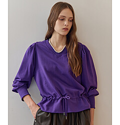 퍼프 슬리브 스트링 브이넥 맨투맨