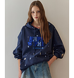 체크 믹스 부클 레터링 루즈핏 후드 티셔츠