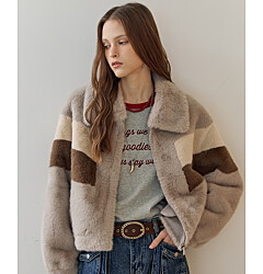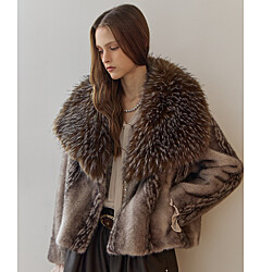 폭스 카라 그라데이션 페이크 퍼 자켓