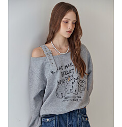 스트랩 원숄더 그래픽 루즈핏 맨투맨