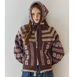 노르딕 패턴 니트 집업 가디건&스카프 세트