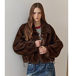 메탈릭 버튼 라운드넥 페이크 퍼 자켓
