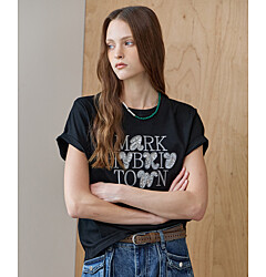 스팽글 레터링 라운드넥 반팔 티셔츠