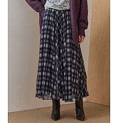 체크 플리츠 밴딩 쉬폰 롱 스커트