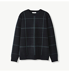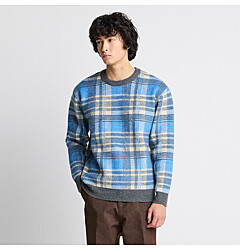 멀티컬러 빅체크 니트 (블루)