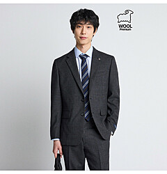 클래식핏 울 혼방 체크 수트자켓 (그레이)