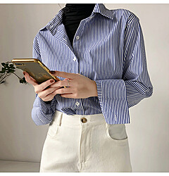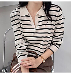 (귈림) 버튼 카라 스트라이프 니트(G5WKN121P)