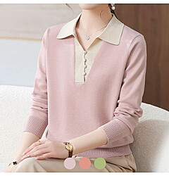 (예쎄) 자수 프릴넥 배색 니트(S5WKN074A)