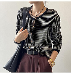 (예쎄) 헨리넥 배색 스트라이프 니트(S5WKN080A)