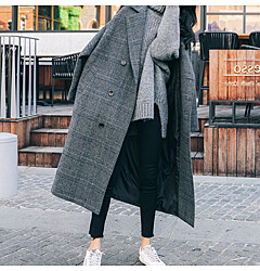 (예쎄) 모직 뒷밴딩 체크 플리츠 롱스커트(S4WSK007A)