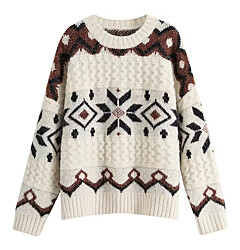 (예쎄) 빈티지 패턴 자수 라운드넥 배색 니트(S5WKN066A)