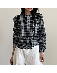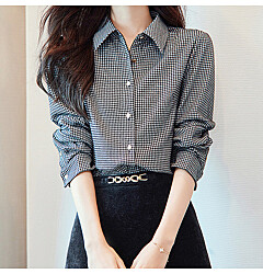 (귈림) 체크 차이넥 언밸런스 셔링 블라우스(G5WBL016P)