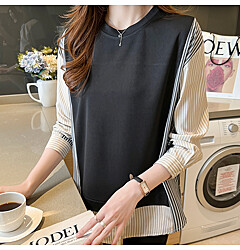 (귈림) 루즈핏 스트라이프 라운드넥 니트(G5WKN129P)