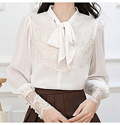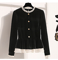 (귈림) 벨벳 레이스 장식 크롭 블라우스(G5WBL019P)
