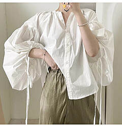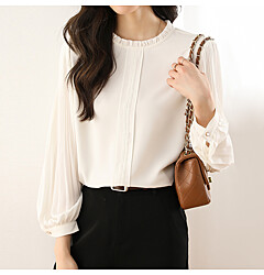 (귈림) 코튼 레이스 셔링 버튼 블라우스(G5WBL012P)