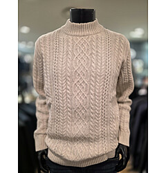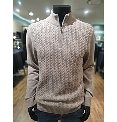 [바쏘옴므] F/W 베이지 혼방 꽈배기 반폴라 니트