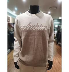 [바쏘옴므] 24년F/W 베이지 모혼방 레터링 언밸런스 라운드 니트