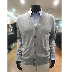 [바쏘옴므] 그레이 솔리드 브이넥 케시미어혼방 기본카디건