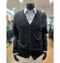 [바쏘옴므] 블랙 솔리드 브이넥 케시미어혼방 기본카디건