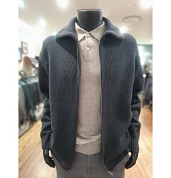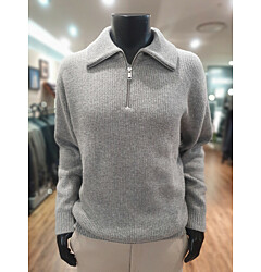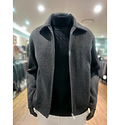[바쏘옴므] F/W 그레이 캐시미어 혼방 짚업 반폴라(모크넥) 니트