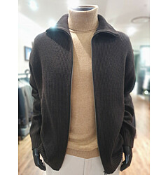 [바쏘옴므] FW 다크브라운 모혼방 하이넥 짚업 카디건