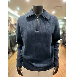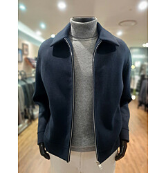 [바쏘옴므] F/W 블루 캐시미어 혼방 짚업 반폴라(모크넥) 니트