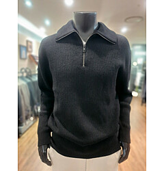 [바쏘옴므] F/W 블랙 캐시미어 혼방 짚업 반폴라(모크넥) 니트
