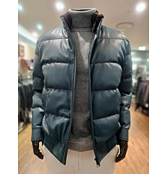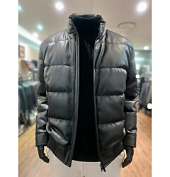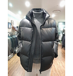 [바쏘옴므] 24년F/W 블랙 하이넥 프리미엄 덕다운 인조가죽 숏패딩 점퍼