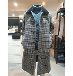 [바쏘옴므] F/W 라펠 탈착 하운드투스체크 오버핏 발마칸 롱코트