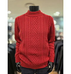 [바쏘옴므] F/W 레드 혼방 꽈배기 반폴라 니트