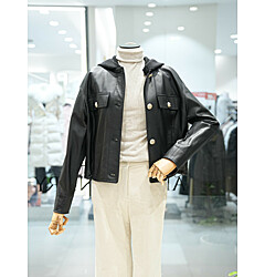 [BCBG] 양가죽 니트 후드 레더 재킷 (A5F8Y925)