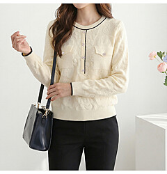 [벨라디터치] V9F4KT33 금장 단추 골지 가디건