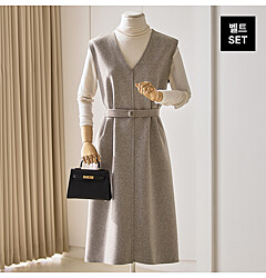 배색 플레어 원피스 재킷 세트 MZAGWO1890